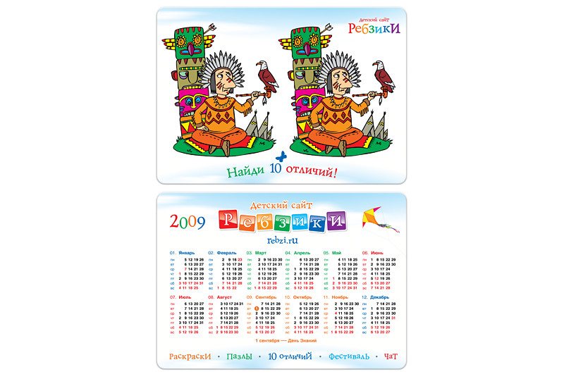 Дизайн карманного календаря для детского сайта Ребзики