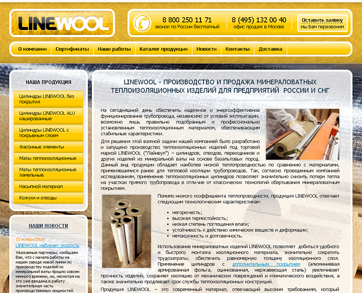 Под торговой маркой LINEWOOL ("Лайнвул") выпускаются минераловатные теплоизоляционные цилиндры для труб и техническая теплоизоляция для энергетических объектов гражданского строительства, а также для объектов нефтяной и газовой промышленности.