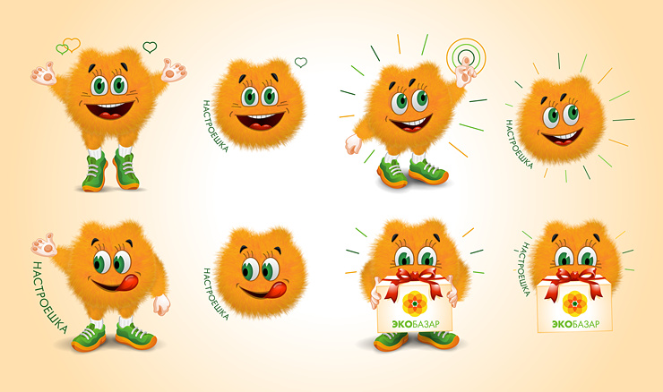 Разработка рекламного персонажа «Настроешка» для сети фермерских рынков «ЭкоБазар»