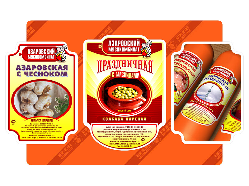 Дизайна упаковки для серии вареных колбас производства Азаровского мясокомбината, г. Калуга