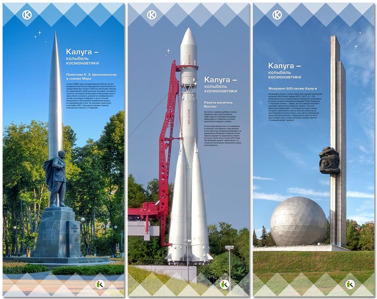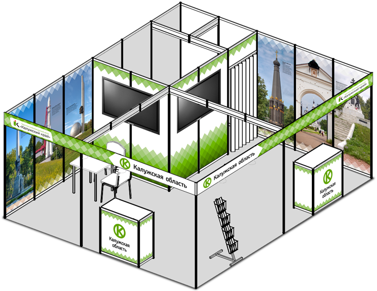 Дизайн выставочного стенда туристско-информационного центра «Калужский край» выполнен на основе фирменного стиля Калужской области разработанного в студии Лебедева и принятого администрацией области в 2011 году.