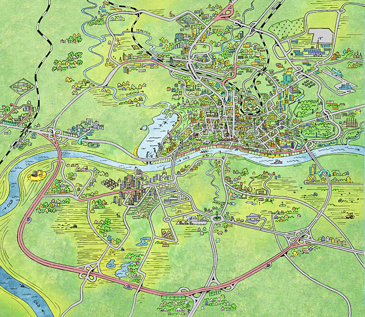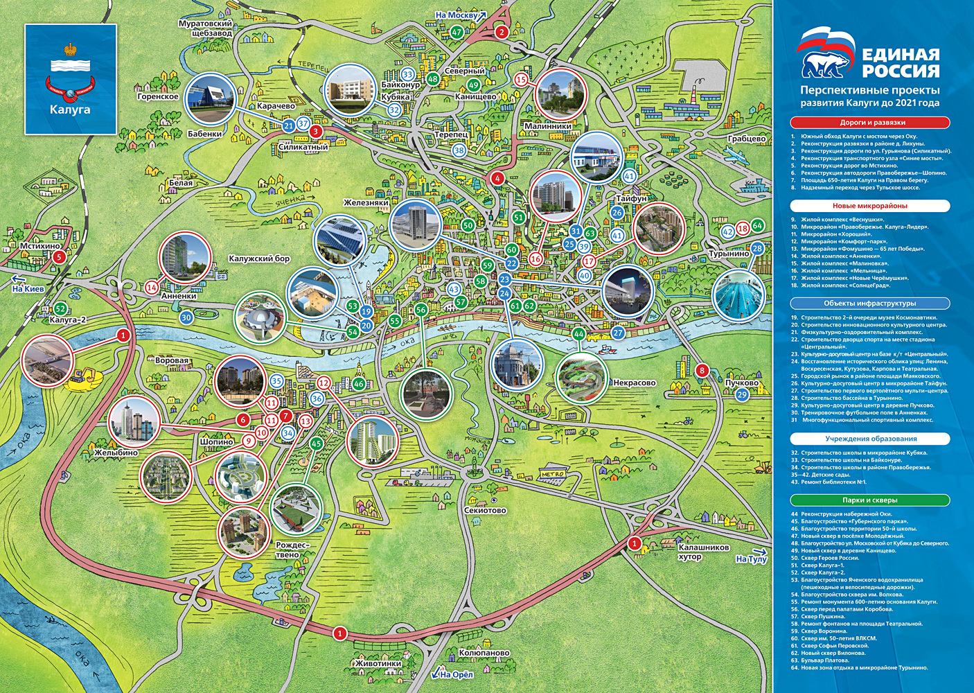 Карта перспективных проектов развития Калуги до 2021 года, осуществляемых под руководством партии «Единая Россия». Карта выполнена в августе 2015 года перед выборами.