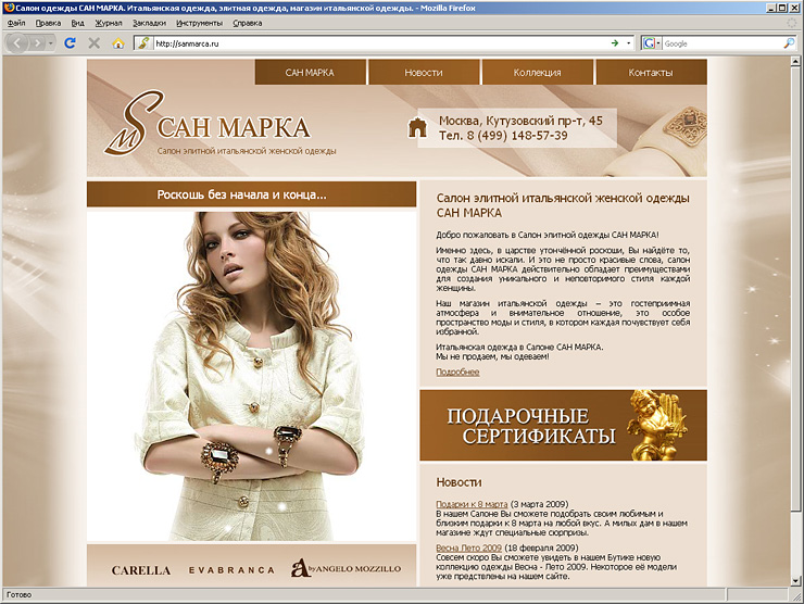 Разработка сайта салон элитной женской одежды САН МАРКА
