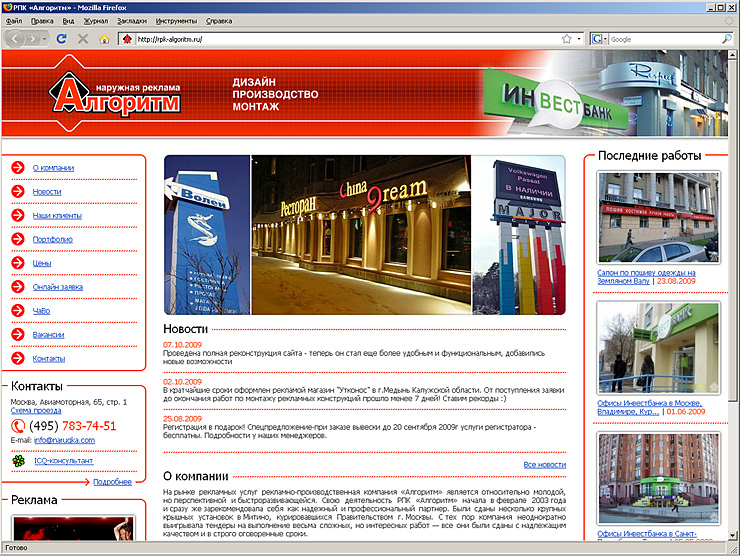 Рекламно производственная компания «Алгоритм» занимается разработкой, производством и монтажом наружной рекламы.