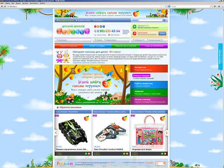Интернет магазин игрушек «Ребзики» - это верный помощник мам и пап, бабушек и дедушек. Здесь вы найдете абсолютно все, что нужно вашему малышу, причем не только для развлечения, но и для занятия спортом, для творчества и просто для комфортного проживания.