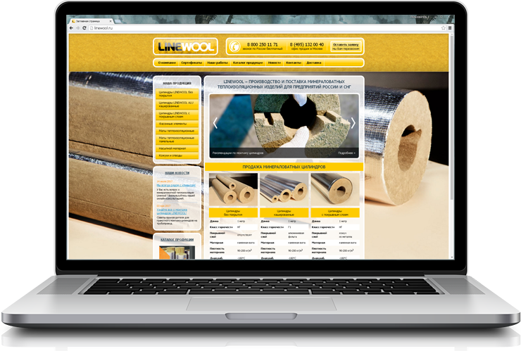 Интернет-сайт торговой марки минераловатной теплоизоляции для труб на основе горных пород базальтовой группы LINEWOOL ("Лайнвул").